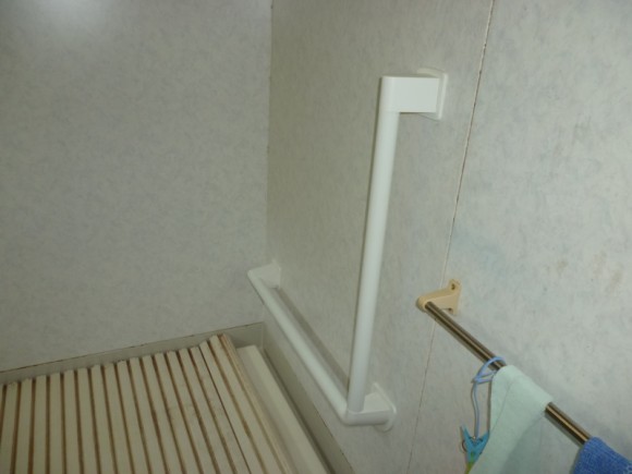 さて先日、既存のユニットバスにL型手摺を付けて欲しいという依頼を受け、工事に行ってきま