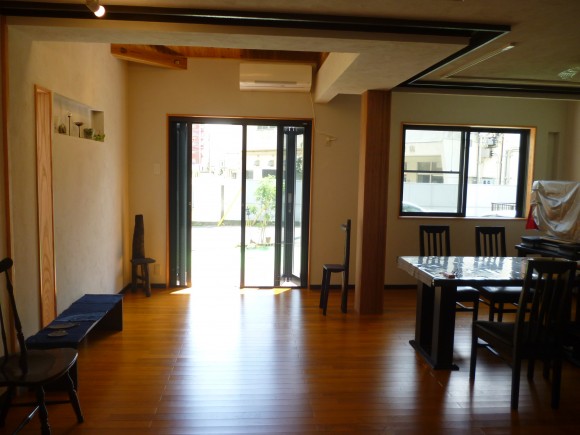 今まで、平らな天井だけだったところに、梁表しの勾配天井が出来た事も