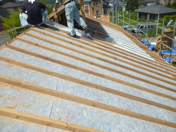 しかも、遮熱シートを施工しているので、遮熱シートの上は、太陽光の照り返しで、汗ダクダク![]()