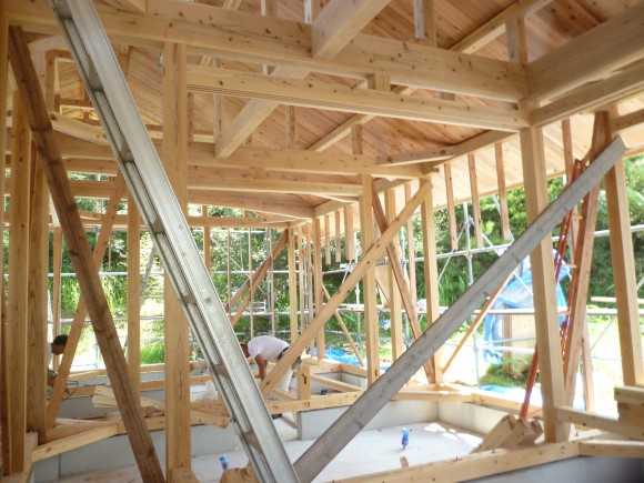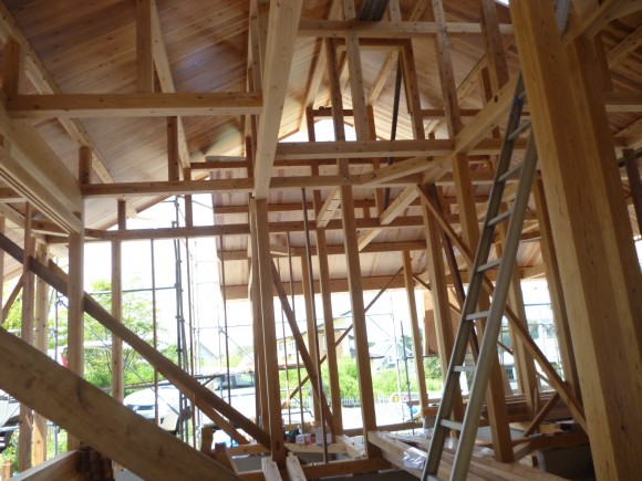 現場は間柱や筋交いが徐々に決まってきております![]()