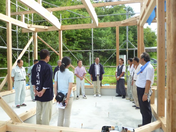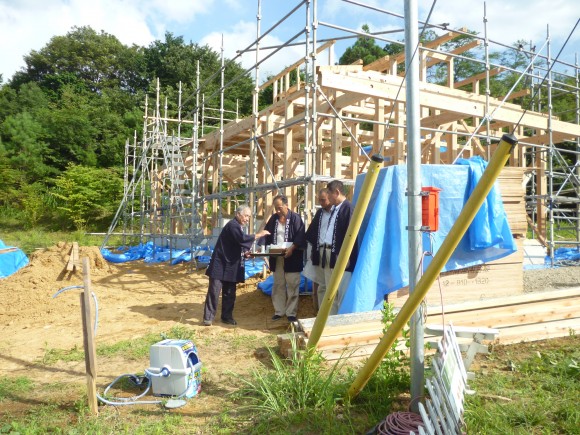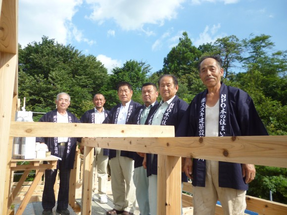 棟梁に祝詞奏上していただき、無事上棟式を終え、最後に記念撮影![]()