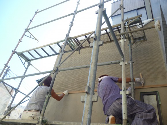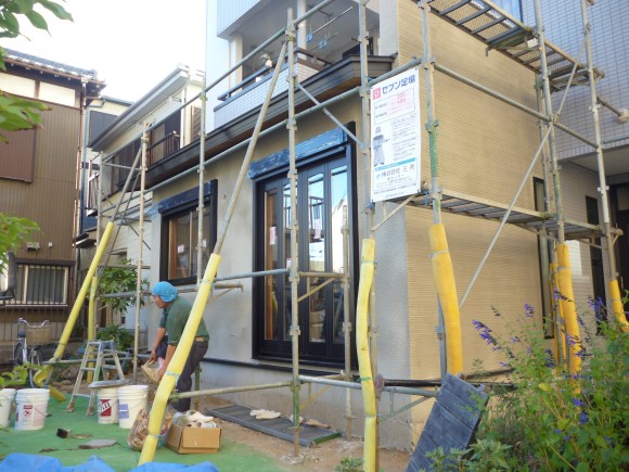 昨日は、外壁の左官工事でしたビックリマーク