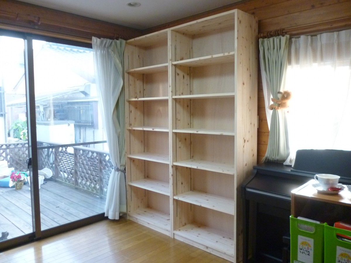 間伐材を利用した材料ですが、桧の香りが本棚を納めさせていただくと、部屋中に広がります![]()