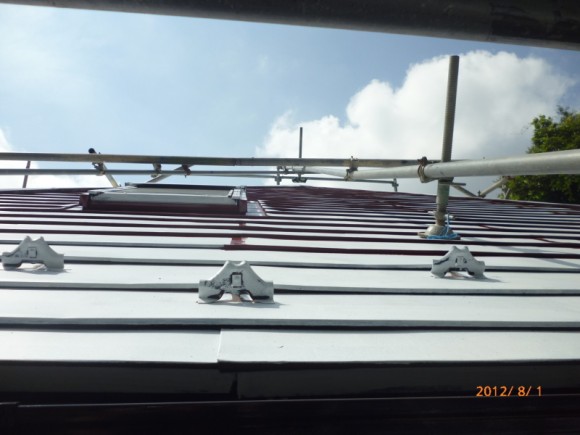 現在、屋根塗装の作業中ですアップ