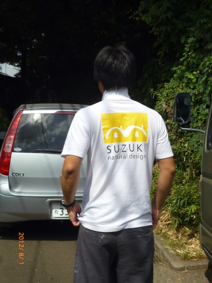 当事務所のポロシャツ(白バージョン)を着て披露してくれましたアップ