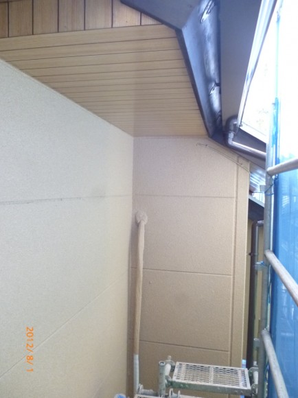 現場チェックを一通り終え、足場から降りると、塗装職人の番頭さんの、やすし君がニコニコしながら、