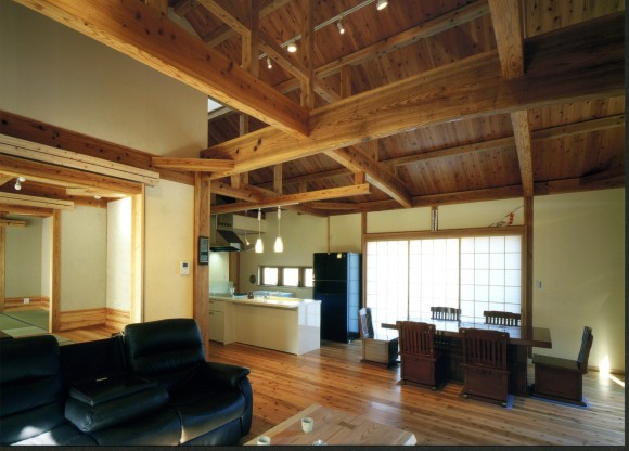 特に、次世代省エネルギー基準(平成11年基準)・等級4を、満足する断熱仕様となると、国産材の柱を室内に現わし,木の魅力を見せるような家づくりは難しく、大壁構造になり、壁の中の柱は木造の柱だったと言うような家づくりななってしまうようです。