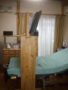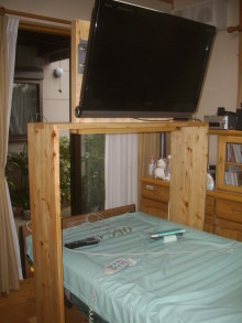 ALS患者さん用のベット用可動32インチTV用台を、国産材で製作、使っていただいています。
