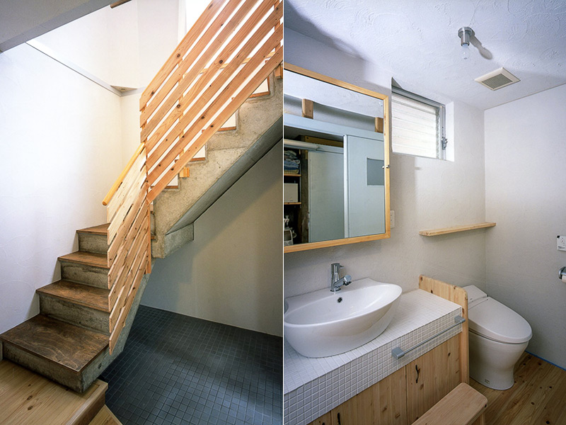 洗面トイレ空間についても、国産桧無垢材を随所に使い、また洗面カウンターについては、奥様と一緒にモザイクタイルを貼るなど、手作り感ある温かみあるお宅となりました。